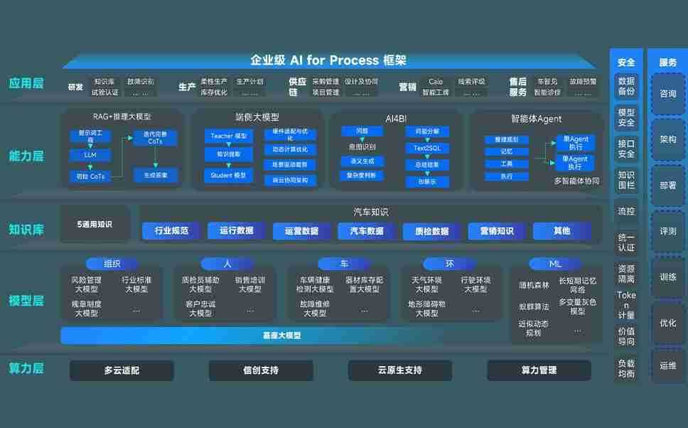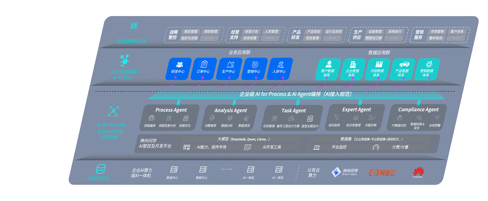 至尊国际问学智车解决方案是一套基于AI技术的汽车行业智能化系统,,覆盖从底层算力到顶层AI应用的全栈方案。。。方案由算力层、、、模型层和应用层组成:算力层,,方案支持多种一体机配置,,具备云端灵活部署、、多云适配以及动态优化计算资源的能力;模型层,,,,至尊国际问学平台版提供了企业级AI应用一站式构建与管理平台,,,,支持基于后训练强化技术的汽车企业专属模型的训练、、、、评测和运营;应用层,,,至尊国际问学DeepSeek版提供包括超级员工、、、、智能招采、、、智能营销、、智能客服、、、AI for BI等一系列解决方案,,,,可助力汽车行业实现数字化转型,,,,让管理更智能、、、、响应更敏捷。。。。
